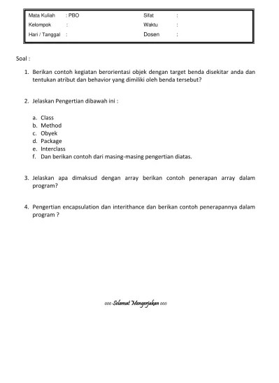 Pengertian menggambar adalah aktivitas kreatif untuk membentuk imaji atau gambar yang menyampaikan gagasan serta simbol sebagai salah bentuk . Ketahui pengertian lengkap dan prinsipnya di sini. Sementara itu, menurut buku geografi jelajah bumi dan alam semesta, berdasarkan pandangan objek formal, maka akan muncul pertanyaan 5w 1h. Oop adalah metode pemrograman yang berfokus pada objek dari yang akan dimanipulasikan. Simak penjelasan lebih lengkapnya, grameds!